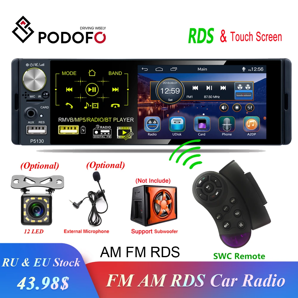 Podofo 1 din Car Radio RDS Media MP5 Player Bluetooth 1Din Autoradio 4" HD Touch Screen FM Receiver