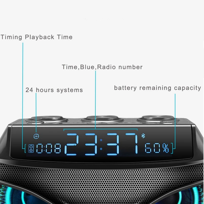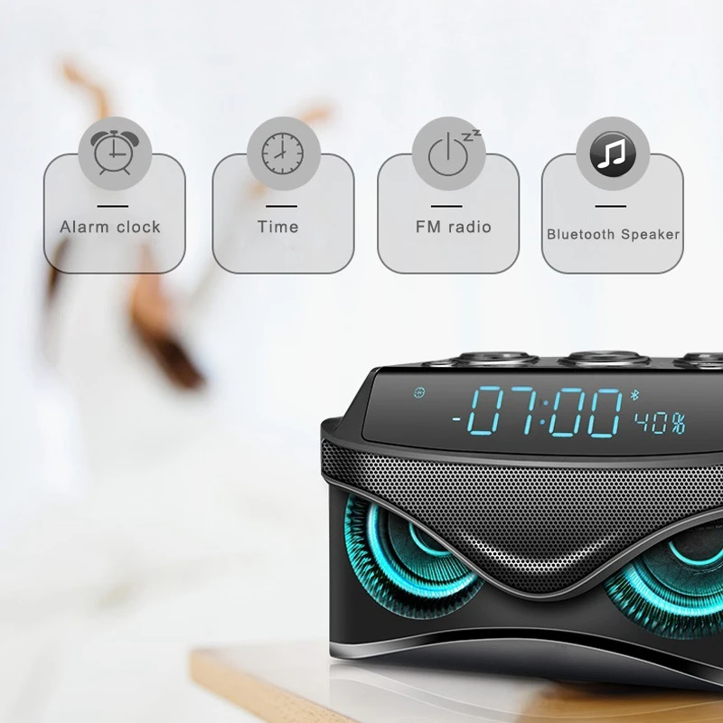 Led Digital Dimmable Desk Alarm Clock with Wireless 19W Smart Bluetooth Speaker/Micro- Tf Slot/Fm R