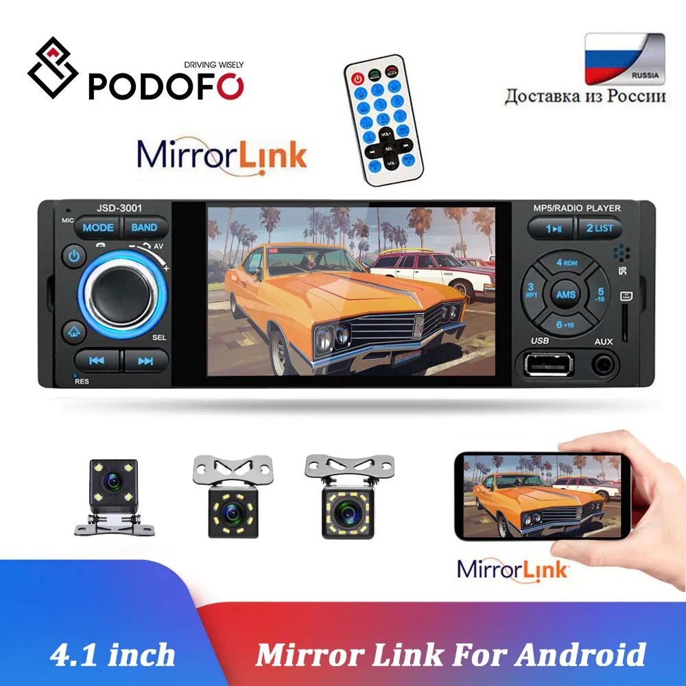 Podofo 1 Din 4'' Car Radio Bluetooth Touch Screen Mirror Link Multimedia Player Autoradio AUX USB S