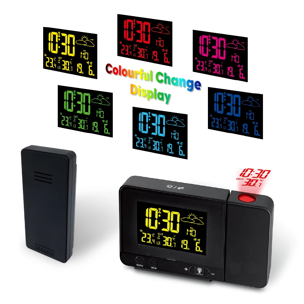 LCD Digital Projection Alarm Clock with Date Dual Alarm Snooze Function Radio-Controll Wireless Wea