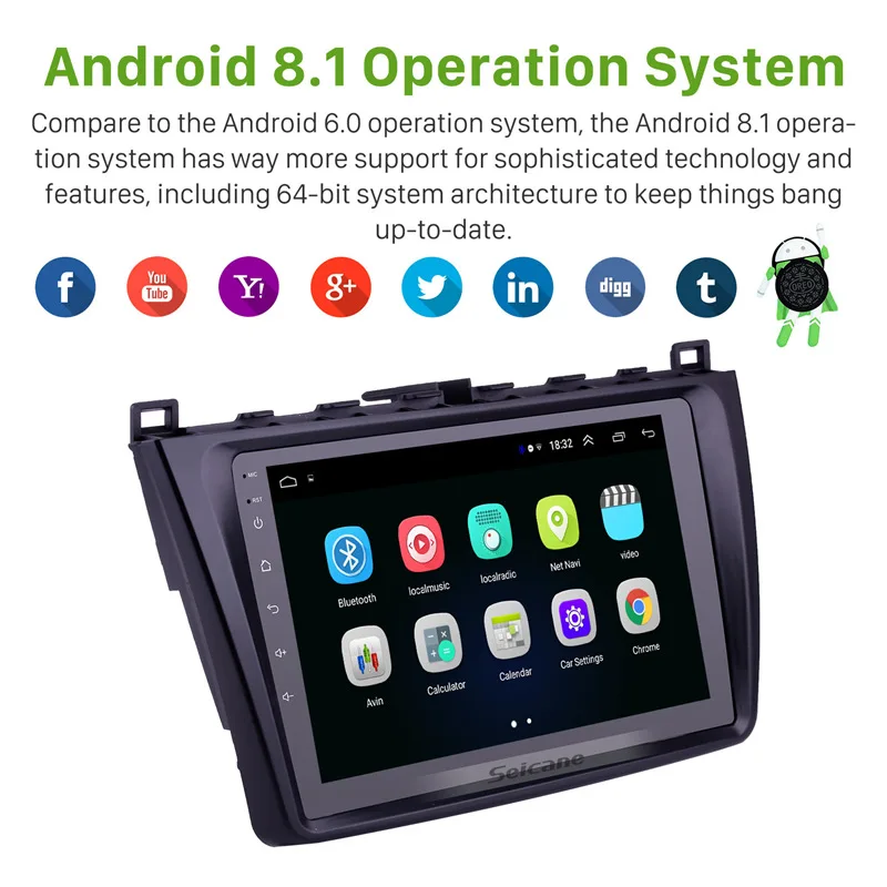Seicane Car Multimedia Player 2din Android 8.1 GPS for Mazda 6 Rui wing 2008 2009 2010 2011 2012 20