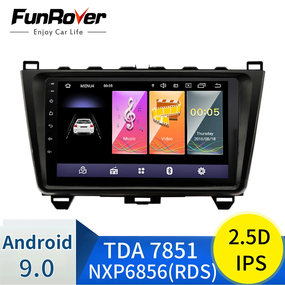Funrover 2.5D+IPS Car Radio Multimedia player 9'' Android 9.0 2 din DVD For MAZDA 6 Mazda6 2008-201